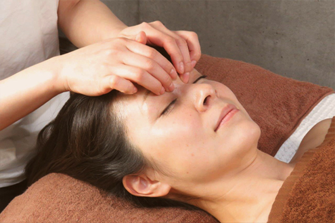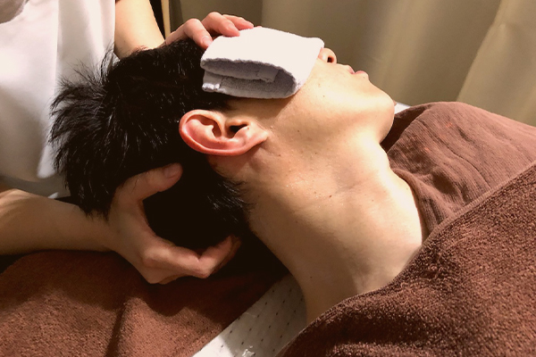 当店では頭だけでなく、目の周りもツボ押しやマッサージで、しっかりとほぐしていきます。
